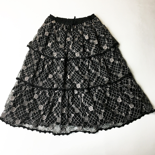 :PINK HOUSE ピンクハウス バラ刺繍 チュールティアードフレアスカート
