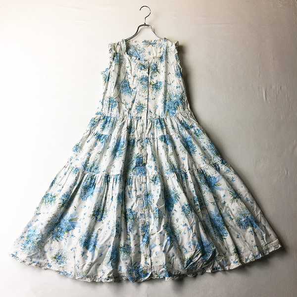 :2019SS PINK HOUSE ピンクハウス ピコフリル ブルースタープリントノースリーブワンピース