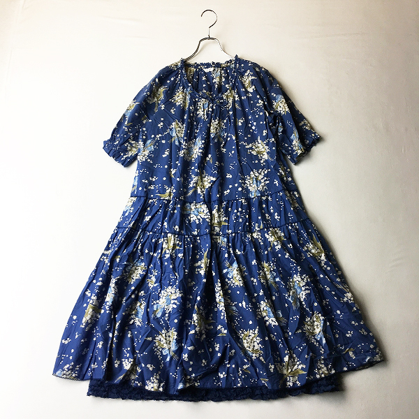 :PINK HOUSE ピンクハウス 裾チュールフリル すずらん柄 ピコフリル 綿ローン ワンピース