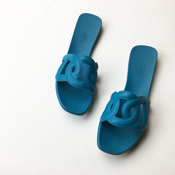 :HERMES エルメス ALOHA アロハ シェーヌダンクル レディース ラバーフラットサンダル 36ブルー