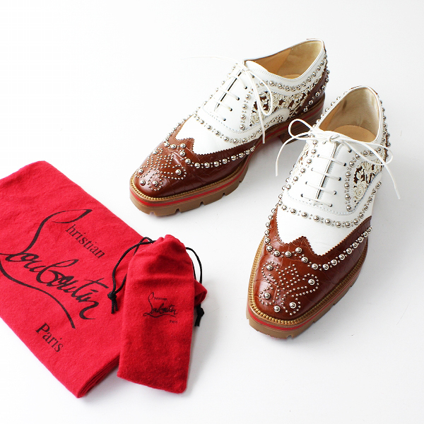 :2017AW Christian Louboutin クリスチャンルブタン CRAPADONNA レザークロコ型押しウィングチップ スタッズシューズ