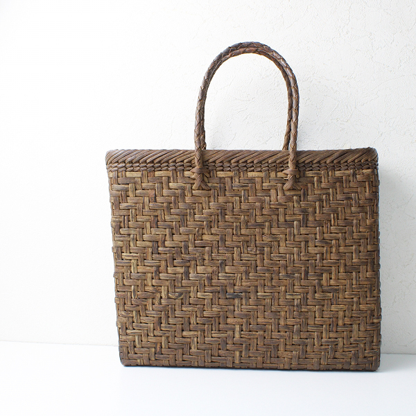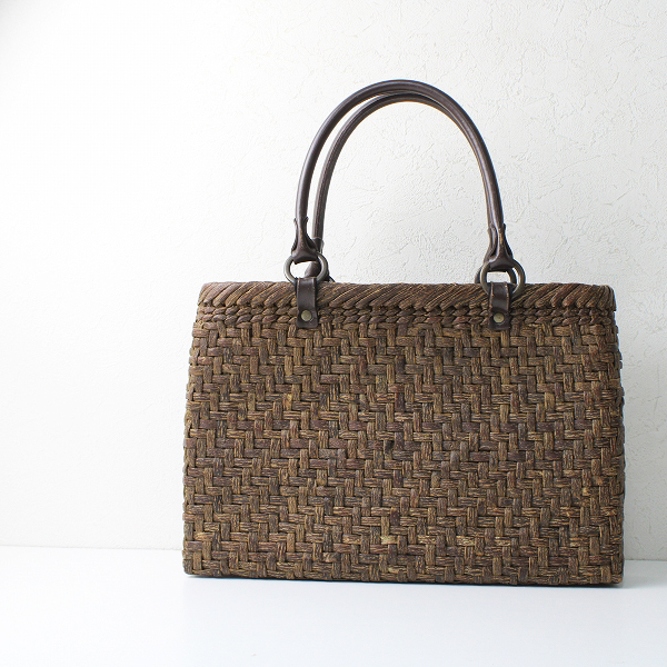 :山葡萄 網代編み レザーハンドル かごバッグ