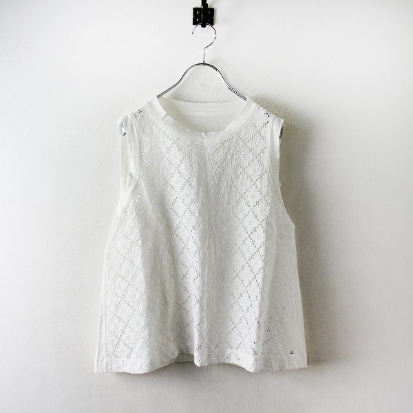 :45R フォーティーファイブアール リネン天竺のカットワークノースリーブトップ