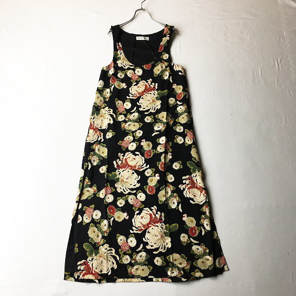 :KANEKO ISAO カネコイサオ 菊柄 ちりめん ノースリーブワンピース
