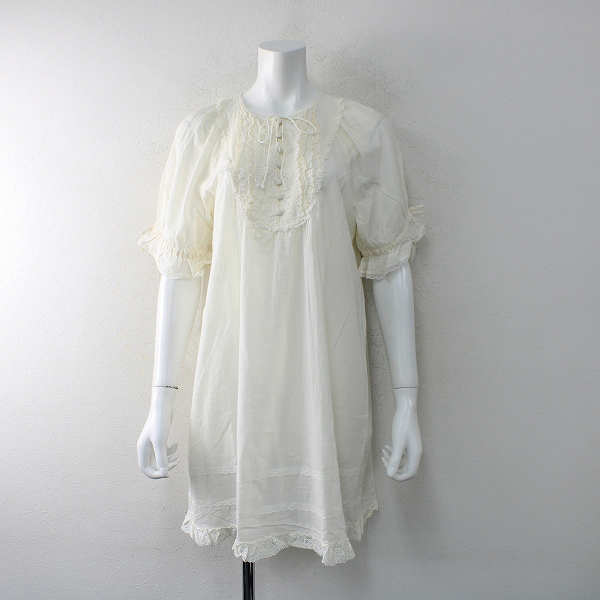 :PINK HOUSE ピンクハウス ピコレースフリル 綿ローン ヨーク切替 チュニックワンピース