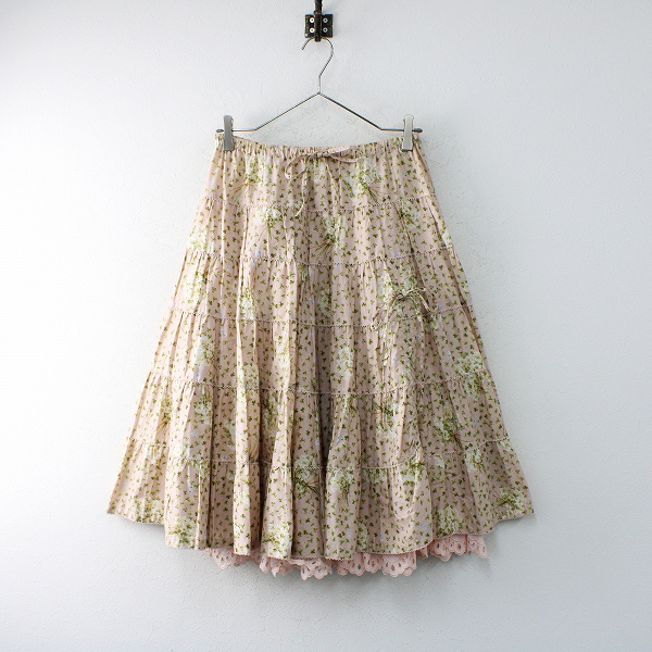:PINK HOUSE ピンクハウス ブーケ柄 綿ローン ティアードスカート