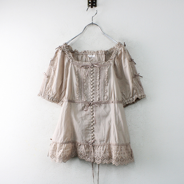 :PINK HOUSE ピンクハウス ピコフリル 綿ローン 後ろレースアップ スクエアネック ブラウス