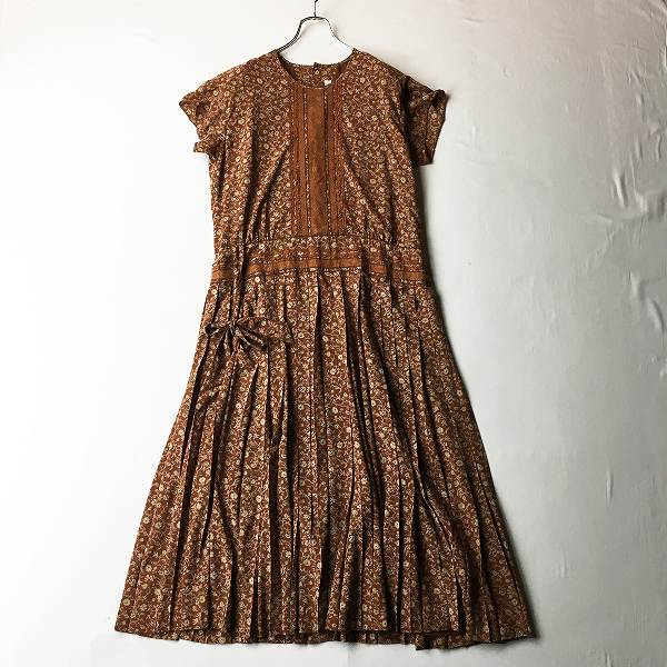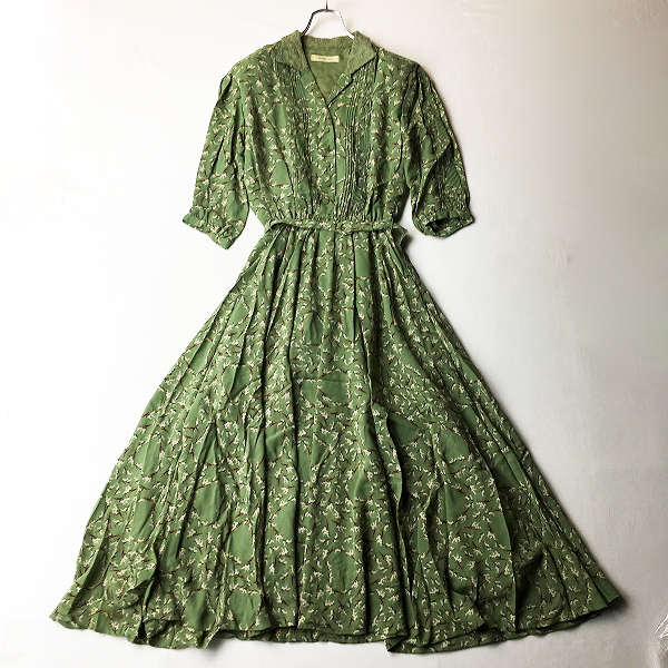 :KANEKO ISAO カネコイサオ フリル襟付 すずらん柄 ウエスト絞り ピンタック フレアシャツワンピース