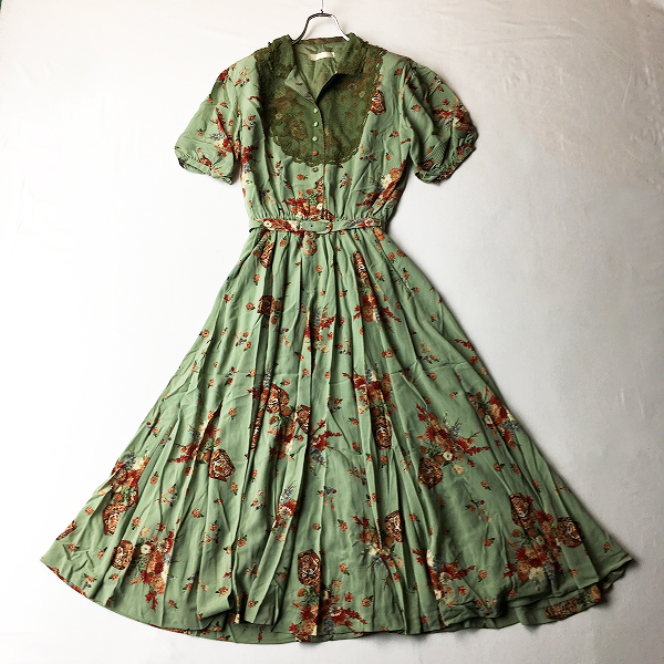 :KANEKO ISAO カネコイサオ ピコフリルレース 花瓶 花柄 ウエスト絞り フレアワンピース