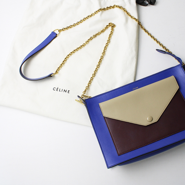 :CELINE セリーヌ 175083 レザー ミディアム チェーン ショルダーバッグ トリコロール