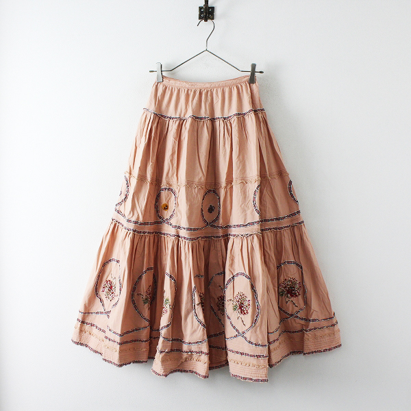 :PINK HOUSE ピンクハウス コットン ブーケ刺繍 チェックパイピング スカート