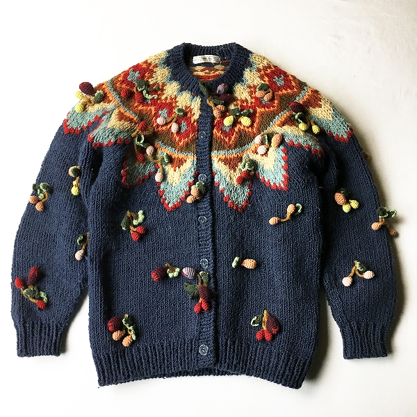 :KANEKO ISAO カネコイサオ フルーツモチーフ 求心柄編み クルーネック カーディガン