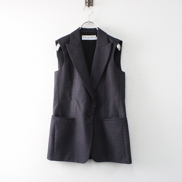 :Christian Dior クリスチャンディオール ボーダー ウール ロングジレ