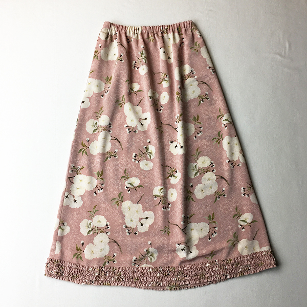:KANEKO ISAO カネコイサオ 裾ピコフリル 縮緬 花柄プリントイージーロングスカート