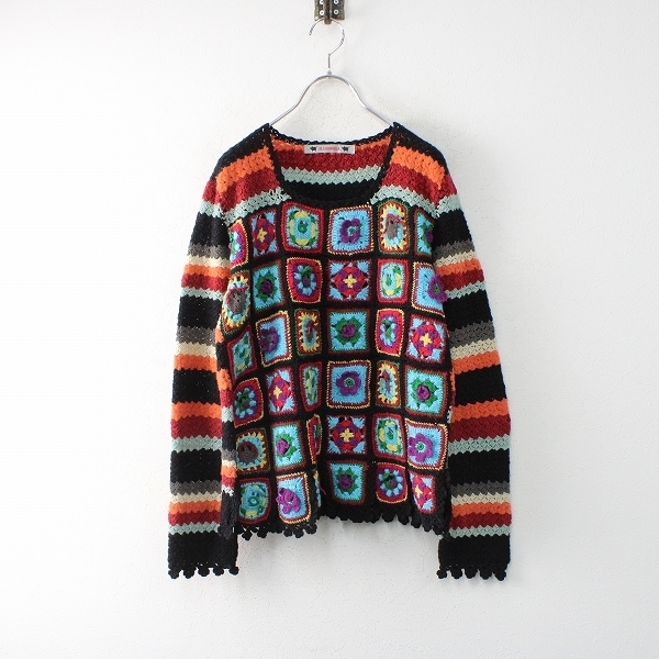 :OLLEBOREBLA アルベロベロ トリ ブタさんモチーフ クロシェ ハンドニットプルオーバー