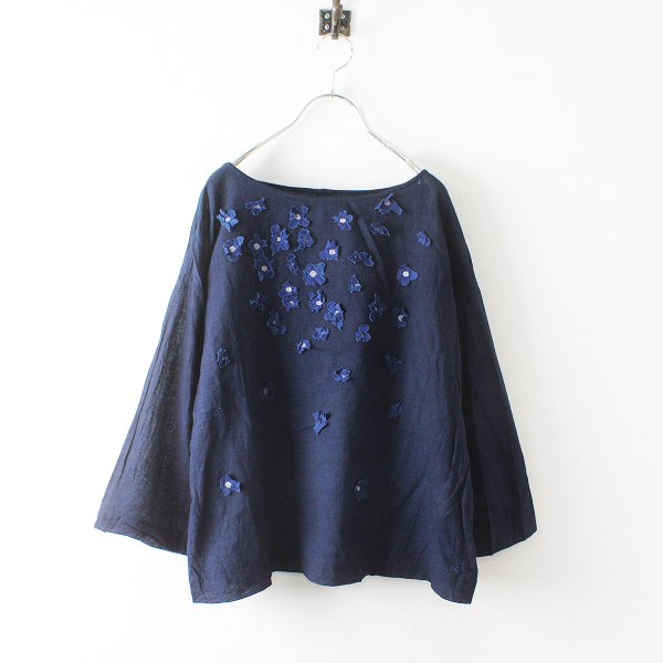:45R フォーティファイブアール インディゴ染め 花モチーフ ブラウス