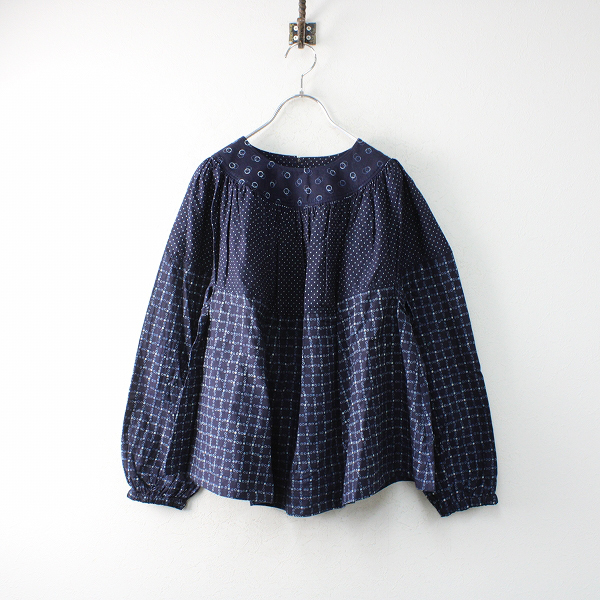 :2020AW 45R フォーティファイブアール インディゴ平ドットミックスプリントブラウス