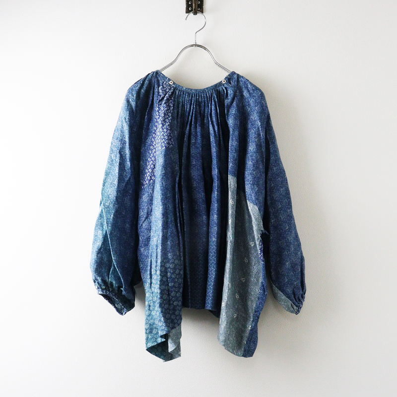 トワヴァーズ TOWAVASE Parfun リネン パッチワーク転写プリント パフスリーブギャザープルオーバーブラウス
