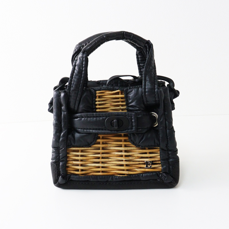 33,000円:2020AW ebagos エバゴス カーフレザー X 紅籐 2WAY ミニカゴバッグ