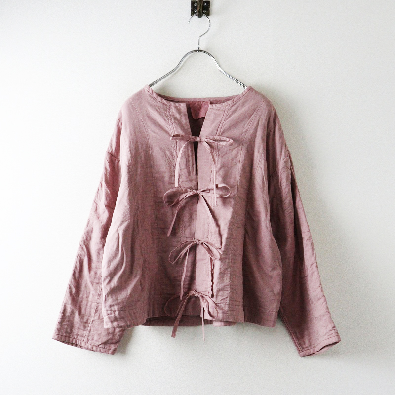 5,000円ガサ gasa 限定品 天然染色 カディコットン 前リボン キルトボレロノーカラージャケット