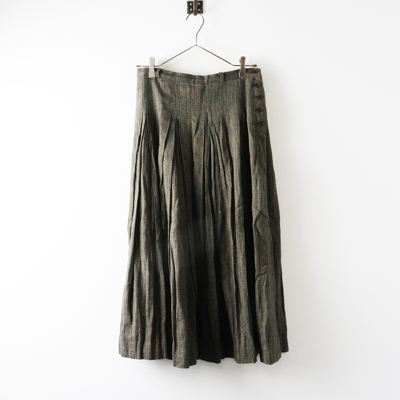3,000円ガサ gasa コットンリネン ヘリンボーン織り ピンストライプ プリーツフレアロングスカート