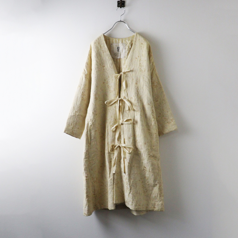 5,000円ガサ gasa フラワージャガード 前リボン ノーカラーロングコート