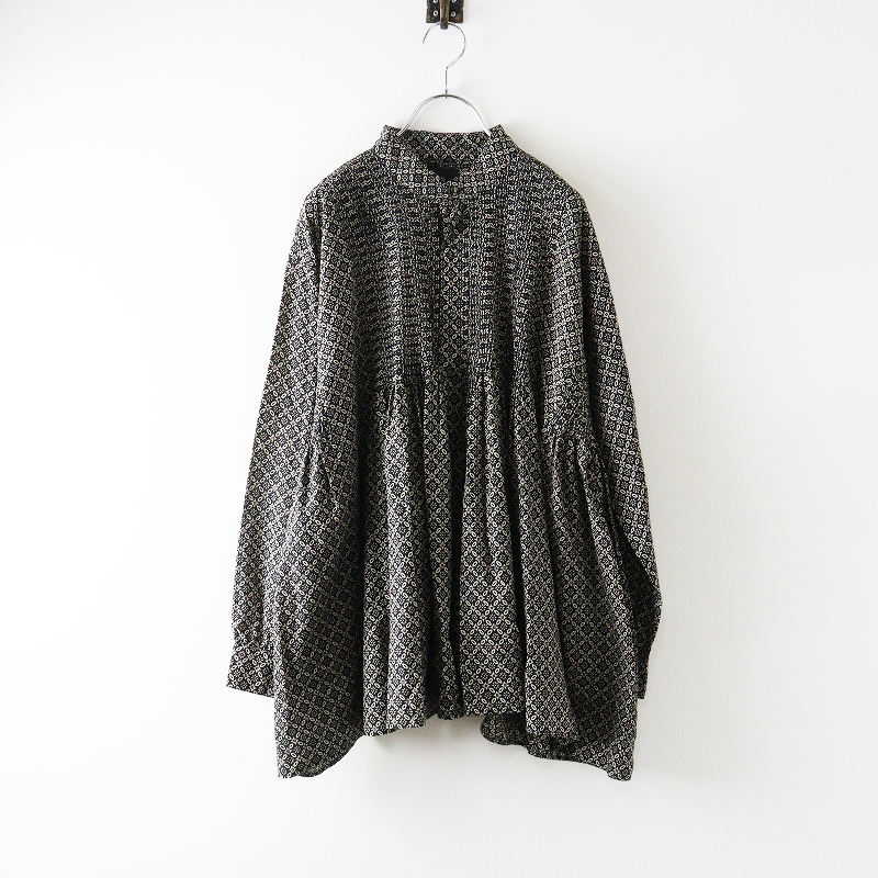 4,200円メゾンドソイル maison de soil ブロックプリントスタンドカラーブラウス