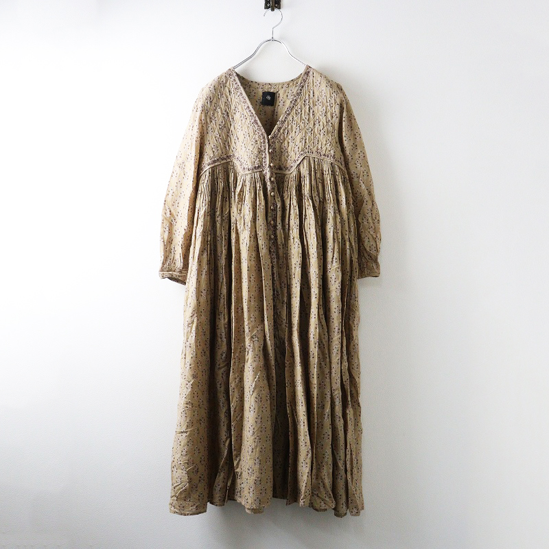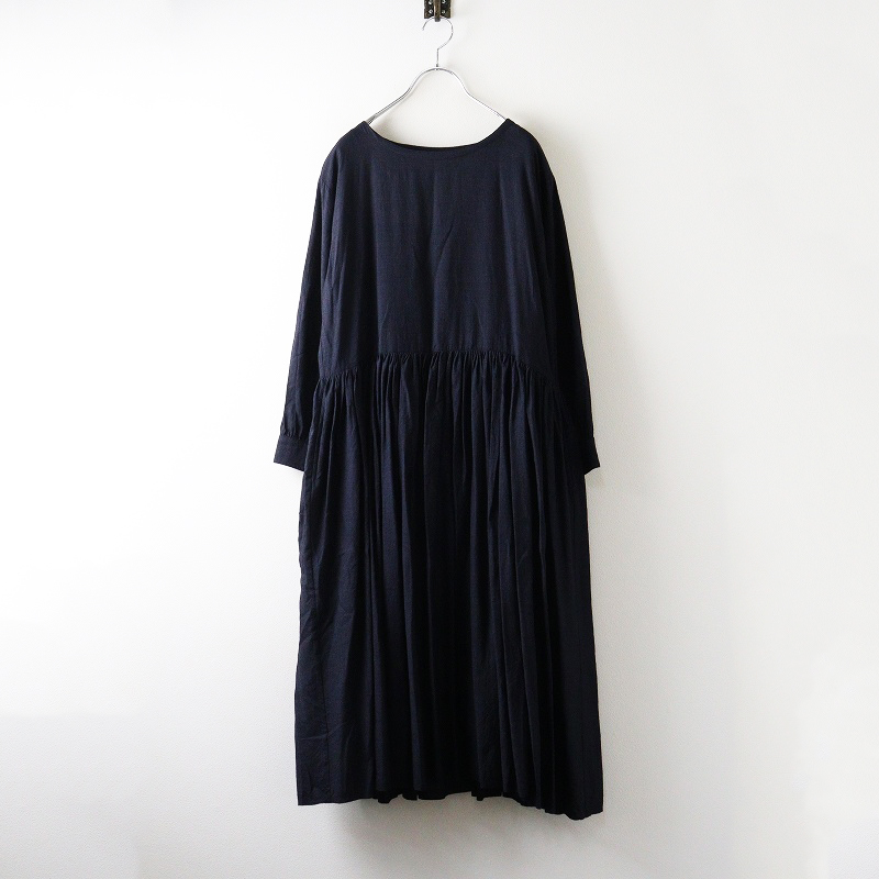 6,000円メゾンドソイル maison de soil WOOL/SILK PLAIN RAJASTHAN TUCK GATHERED DRESS WITH LINING