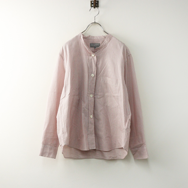 3,000円マーガレットハウエル MARGARET HOWELL コットンシルク ストライプバンドカラーシャツ
