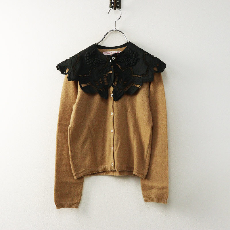15,600円トワヴァーズ TOWAVASE ヴィンテージレース付きカシミヤニットカーディガン