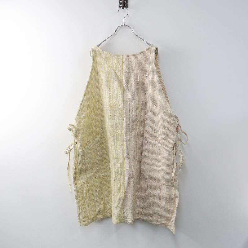 4,000円うさと USAATO 手織り バイカラー サイドスリット ノースリーブ エプロンワンピース